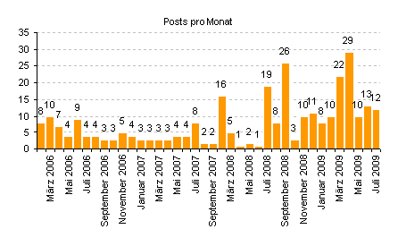 Anhand der Graphik unten kann man gut erkennen, dass sich mit der Ausweitung meiner Aufgabengebiete auch die Anzahl der Artikel vermehrt hat, da sich daraus neue Themengebiete ergeben haben.