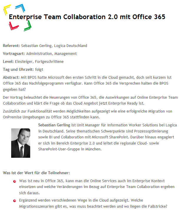 Im Februar findet in München die SharePoint Konferenz der ppedv statt. Ich werde dies Jahr wieder als Sprecher dort sein um insbesondere Business Themen zu positionieren. Diesmal werde ich folgende Vorträge halten: