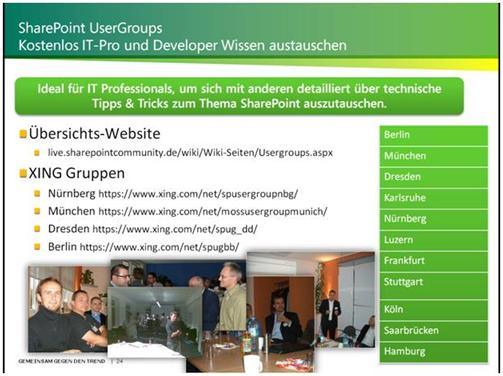 Besonders die Teilung des Vortrags in die Vorstellung der Lösung und die detaillierte Beschreibung des Entwicklungsprozesses vom SharePoint Designer Prototypen zur Visual Studio Solution kam bei den Zuhörern gut an.