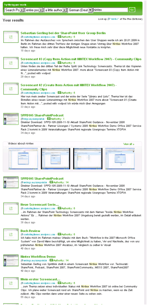 Weiterhin werden alle Enterprise 2.0 Features wie Blogs, Wikis etc. beschrieben. Hierbei geht der Autor vor allem auch auf die Änderungen in der Arbeitsweise der User ein. In diesem Zusammenhang werden auch RSS Feed, Die Datensammlung mit InfoPath sowie Roll ups erläutert.